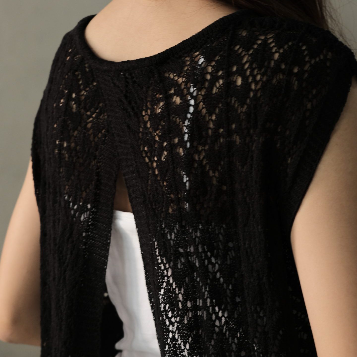 Kompas Charcoal is a stylish and versatile long outer wear from the collection of Nyonya Manis. Kompas presents with an open cross back design, perfect for layering over your outfits.